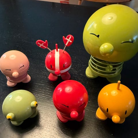 Hoptimisten er designet af den danske møbelsnedker Hans Gustav Ehrenreich, som skabte de fjederhoppende figurer i sit værksted i 1968 for at sprede glæde og optimisme.