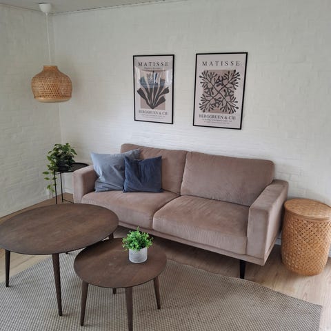 Pæn sofa, som man sidder virkelig godt i, med god støtte.