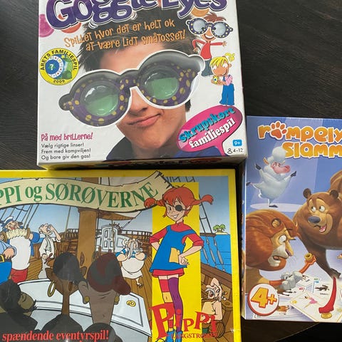 Forskellige sjove brætspil til børn her iblandt Klodsmajor, Børne alfabet, Vildkatten, Afrikas stjerne m.fl. - nogle af dem er slet ikke brugt og resten kun brugt få gange.
