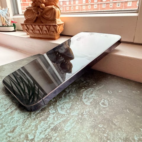 Apple iPhone 14 Pro med 256 GB lagerplads. Bemærk, at der er en mindre ridser både på skærmen og på hjørnet af skærmen, som vist på billederne. Nyt lightning kabel medfølger