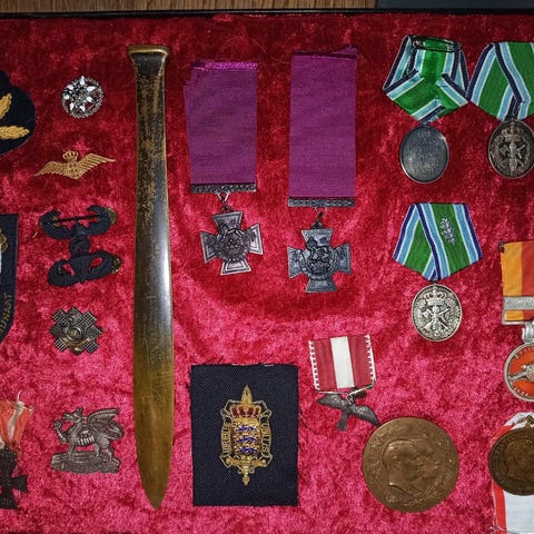 Sæt bestående af forskellige militære og medicinske medaljer og emblemer.