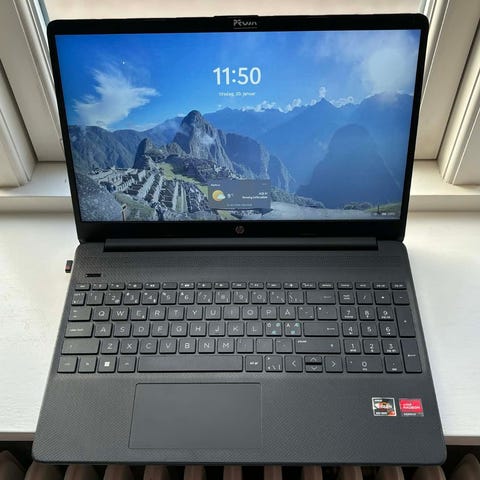 HP bærbar computer i sort farve. En standard bærbar med indbygget tastatur og touchpad. Velegnet til daglig brug og generelle computeropgaver.