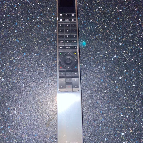 Bang & Olufsen Beoremote Halo væg monteret fjernbetjening til styring af musik. En rund enhed med touch-overflade og minimalistisk design, der muliggør nem kontrol af lydsystemer.