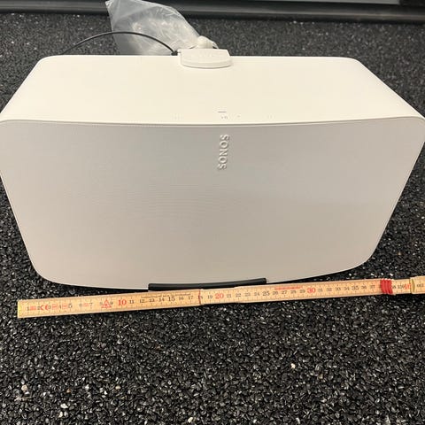 Sonos trådløs højttaler og lydudstyr i hvidt design. Enhederne er beregnet til at levere lyd i hjemmet og kan forbindes trådløst for at skabe et sammenhængende lydsystem. Der er 1 stk Sonos Connect, 1 stk Sonos Boost og 3 stk Sonos Play højtalere i 1. generation(S1 app)