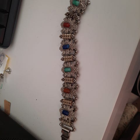 Sælger dette unikke og utroligt smukke armbånd i hvidt porcelæn. Armbåndet er håndmalet af den danske porcelænsmaler Bitten Sjøberg og bærer hendes karakteristiske signatur indvendigt. Motivet er et elegant og detaljeret påfuglemønster i nuancer af dyb blå og støvet grøn, smukt komplementeret af detaljer i ægte guldstafage. Det er et tidløst smykke, der kombinerer klassisk dansk kunsthåndværk med et strejf af luksus.