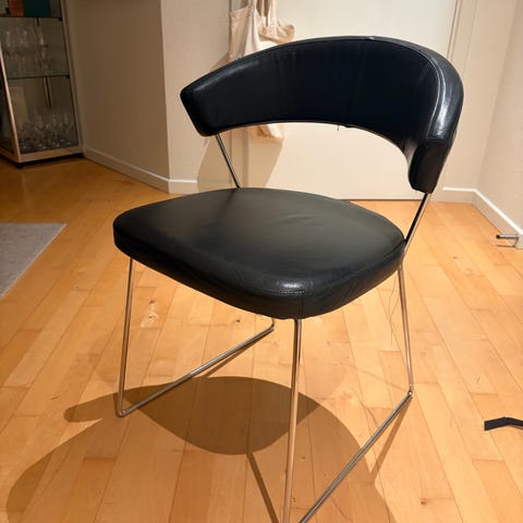 Harbo stole 6 stk. Mørkegråt kunstlæder. Ingen huller. Ben kan justeres. Nem at rengøre.