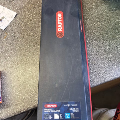 En kasse Knauf gipspladeskruer RA 35, beregnet til montering af gipsplader på stål. Skruerne er sortfosfaterede og velegnede til montage af op til 2 lag gips på stålprofiler.