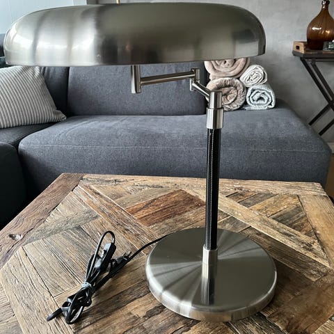 Ca 45 cm i højden + skærmen har en diameter på ca. 37 cm.