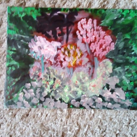maleri kvinde og plante, acryl på lærred 50x70 cm, K.P.