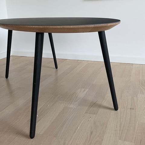 Rundt bord bøg med sort linoleumsplade.