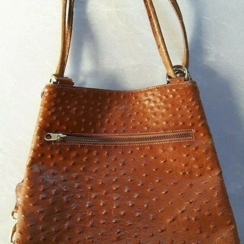 Skuldertaske, andet mærke, strudseskind, Rød taske fra Jane Buchard af struds. Flotte detaljer.