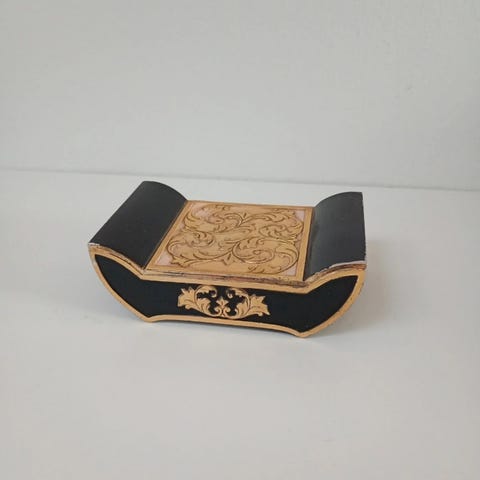 Stor flot vintage smykkeskrin. Håndskåret træ. Formodentlig fra Indien.