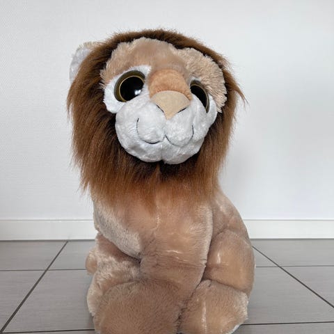 Stor og vamset plysbamse bjørn, med glas-/plastikøjne, til børn i alle aldre.