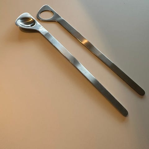 Sælger dette klassiske Arne Jacobsen salatbestik fra Steltons Cylinda-line serie.