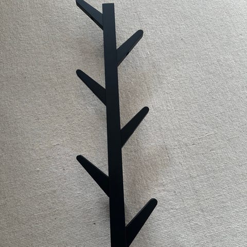 Ilva knage i hvidmalet træ med metal. Knagen har en Y-formet konstruktion med tre kroge og monteringsbeslag på bagsiden. Velegnet til ophængning af tøj eller tilbehør i hjemmet. Mål h 36, b 24 cm. Fra røgfrit hjem. Pris pr styk