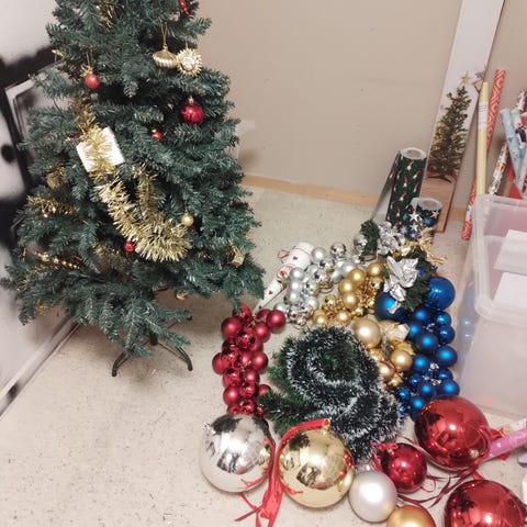 Salgs borde, mange rumdeller, andre tig fra butik.