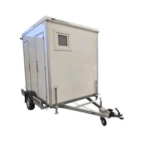 EasyWagon er 100% danskejet producent af letvogne! Denne vogn står på depot Sjælland. Denne vogn indeholder 2 toiletter i hver deres separate rum. Toiletterne er med kværn og er den ideelle løsning til dig der har adgang til kloaksystem og vand. På denne måde slipper i for at tømme toiletterne. Vognen kan monteres på et almindeligt anhængertræk og er mobil at flytte rundt med. Vognen er rummelig og har glatte overflader der gør rengøring nemt og hygiejnisk. På hvert toilet finder du også en radiator så vognen kan anvendes hele året rundt.