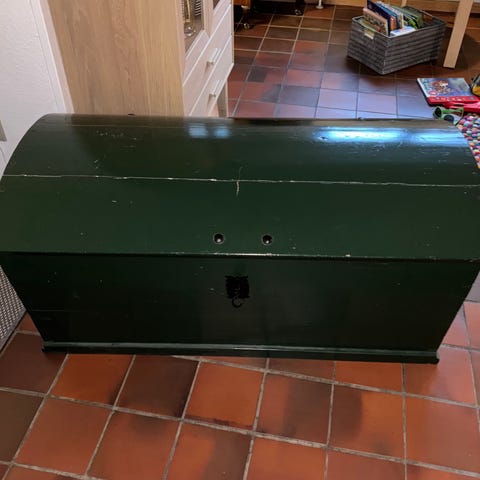 Fin lille Dragkiste, malet træ kiste, opbevaring.