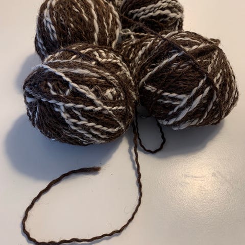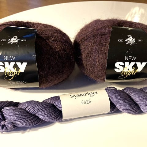 2 forsk. nøgler (det ene sokkegarn og det andet et slags tweed garn).