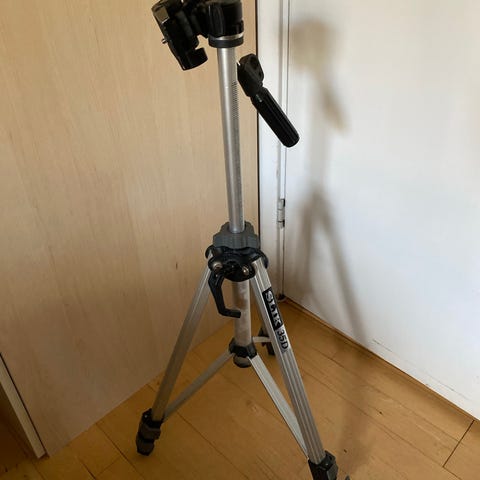 Slik Master stativ til kamera med justerbare ben og håndtag til præcis positionering og panorering. Fremstillet i aluminium med sølvfarvet finish. Designet til stabilitet og brugervenlighed ved fotografering indendørs med gummidupper og udendørs med pigsko. Højden indstilles op til 165 cm