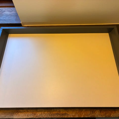 Brabantia varmeskuffe til køkkenudstyr, fremstillet i aluminium. Designet til at holde mad og køkkenredskaber varme. Udstyret med to brændere og et låg med ventilationsåbninger.