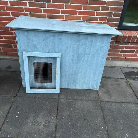 2 etagers kaninbur. 118 cm i højden og 107,5 cm i bredden. Der er tydelige brugsspor fra vores kanin. Øverste etage er der stampet et hul i hulen og platoet ved siden af. På platoet er hullet dækket med en jernplade og i hulen, er det uden betydning. Buret sælges da vores kanin desværre er gået bort.