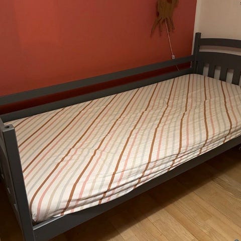 2 ILVA senge med træramme og lamelbund. Sengene har en enkel og funktionel konstruktion med lameller, der giver støtte til madrassen. Sengen er i hvidt træ. Madras medfølger ikke og sengene bliver skilt ad for nemmere håndtering ved afhentning. Sengene har før været benyttet som køjesenge. Pris er pr. stk.