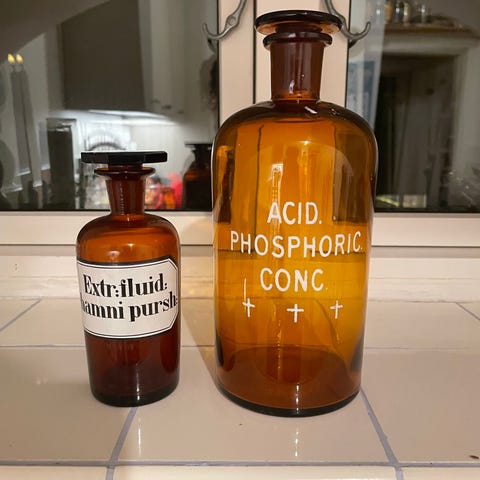 Apotekerflasker i brunt glas