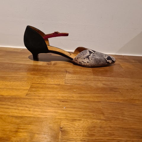 Den indvendige længde er 24,2 cm, hælen er 7 cm høj, det bredeste sted er 8 cm