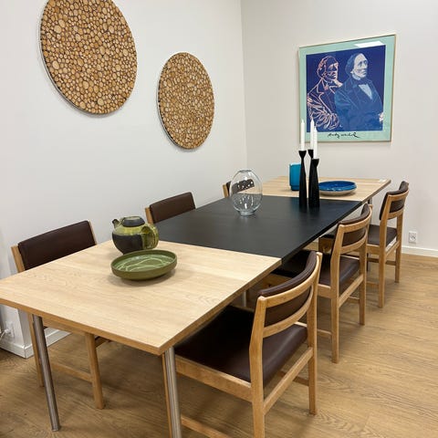 Bymain - sildebensparket massivt plankebord med store solide metalben.