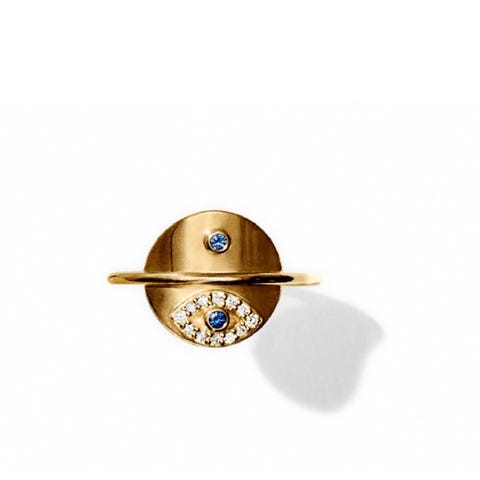Smuk Line & Jo Eye ring i 14 kt guld med diamanter og blå safir