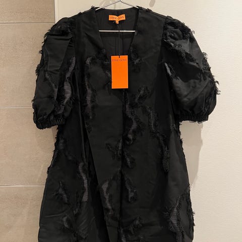 Stine Goya kjole i modellen Brush, mørkeblå med sorte pletter. Flot drapering og smigrende pasform.