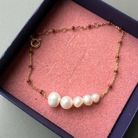 Imellem ferskvandsperlerne er små guldbelagte perler.
