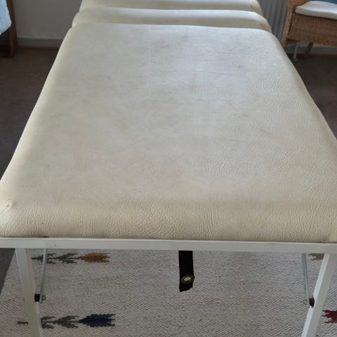 Massagebriks med brun polstring og metal stel