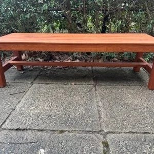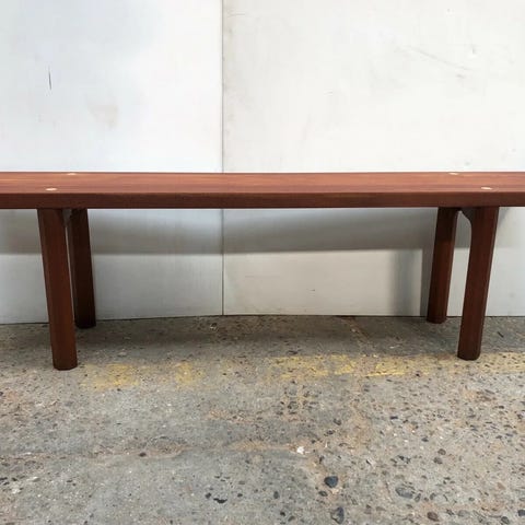 Bænk i massiv oliebehandlet teaktræ,med hexagonale ben.