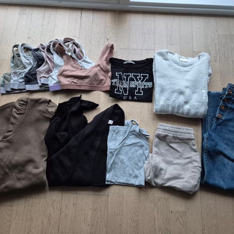 1 t-shirt, 9 toppe, 1 bluse, 1 cardigan og 1 kjole.