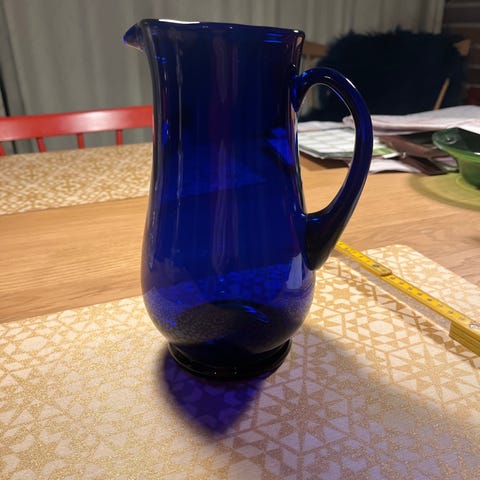 Holmegaard Baltica kande i klart glas. Kanden har en cylindrisk form med en tud og håndtag, egnet til servering af drikkevarer.