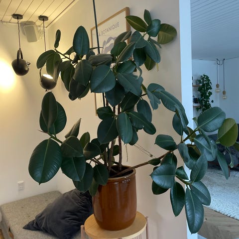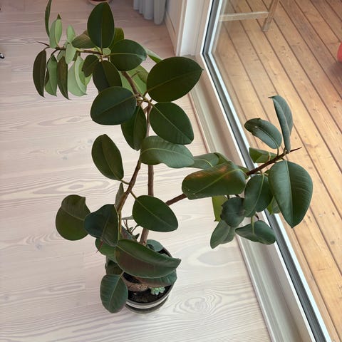 Ficus elastica, med grøn og rosa varigiation. Har haft den i mange år, men vi er ikke gode venner og derfor er jeg nødt til at sende hende videre til et nyt hjem. Hun er sund og rask, inden skade dyr, da hun har været behandlet for en sikkerhedsskyld. Trænger muligvis til et potte skift og noget støtte. Byd. Hun skal afhentes