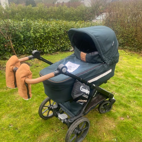 Lift med madras, madras til barnevogn, myggenet, regnslag, suppleret med Najell voksipose til barnevogn som kan bruges med sele. Den kan også bruges i klapvognen.