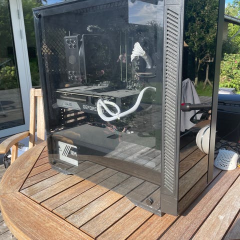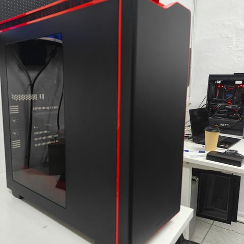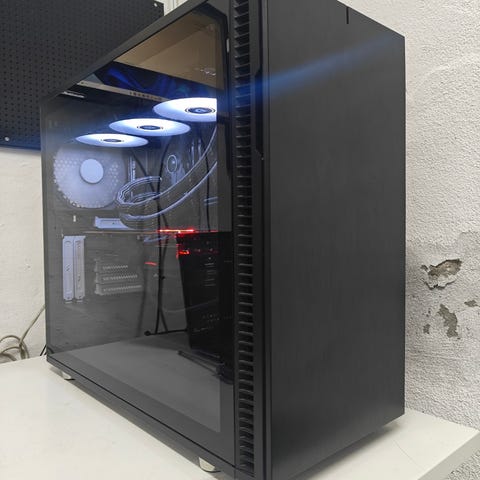 En maskine jeg har foreberedt for en kunde. Den har været i brug som arbejdsmaskine for et større 3D studie. Bygget orginalt set af SharkGaming. Rengjort fysisk grundigt af mig, og geninstalleret Windows 11 (TPM bypass). Den har desværre lidt slag på toppen og siden, men den fejler intet udover dette kosmetisk. Super lækker og let rengøring med det magnetiske støvfilter i fronten, som jeg kan vise hvordan du benytter.