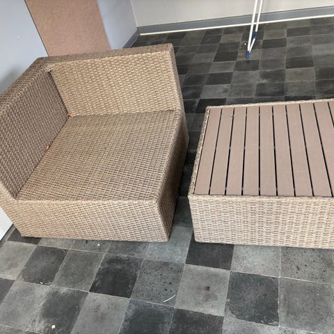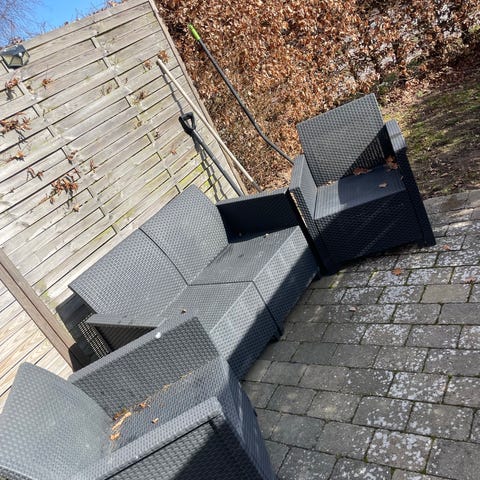 Havemøbelsæt bestående af modulopbygget sofa i grå flet. Sættet er velegnet til udendørs brug på terrasse eller i have. Pris kan forhandles 😊
