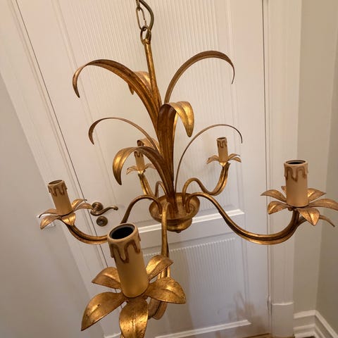 Disse lysekroner er fremstillet i massivt messing med fem lysarme, designet til brug med almindelige stearinlys.