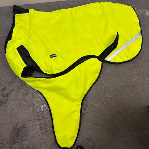 Shield hundedækken i sort med orange detaljer. Fremstillet i slidstærkt materiale med justerbar rem og lynlås. Designet til at holde hunden varm og beskytte mod vind og vejr. Størrelse 5