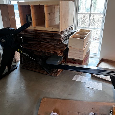 Concept2 model D PM5 romaskine inklusiv original måtte og deluxe sædepude.