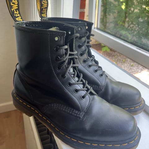 Dr. Martens støvler i størrelse 38 med sort bundfarve og blomsterprint. Enkelte slitagemærker på indersiden af hæl og tå, men ellers mega fine.