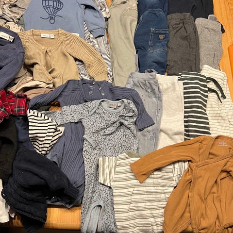 Lille tøjpakke med bluser og lynlåstrøje str. 104.