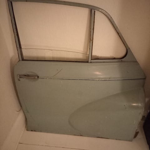 Flaskegrøn Morris 1000 bildør evt. Til dekoration på væg. Incl. Rude.