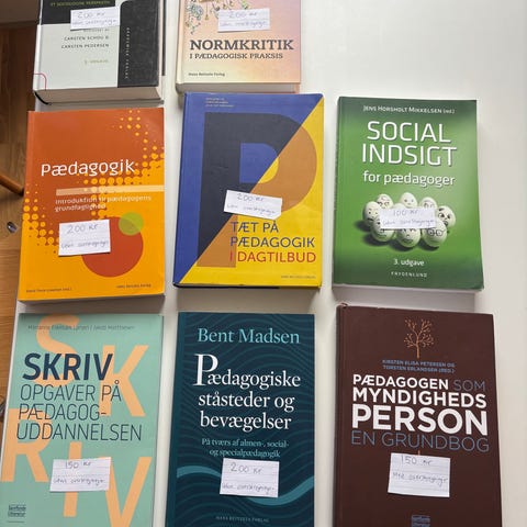 Efter som jeg er kommet på hovedforløbet til pædagog assistent sælger jeg mine grund forløb 2. Bøger! 100kr pr styk! Skriv hvis du interesseret!!