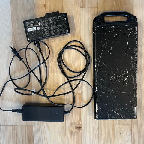 Batteri til ladcykel. Batteriet fungerede ved sidste brug. Men stikket på cyklen ødelagde med en stift ind i batteriet. Så den ikke virker mere