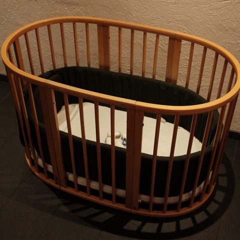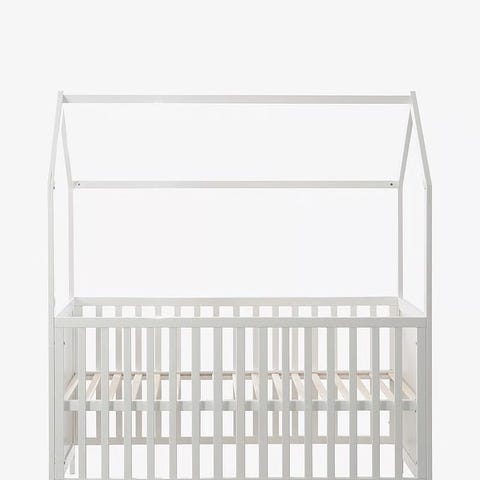 Bunden kan justeres i to højder så det er nemt at tage baby ind og ud af sengen. Den ene side kan fjernes så den kan bruges til større børn, hvor de selv kan stå ud af sengen.